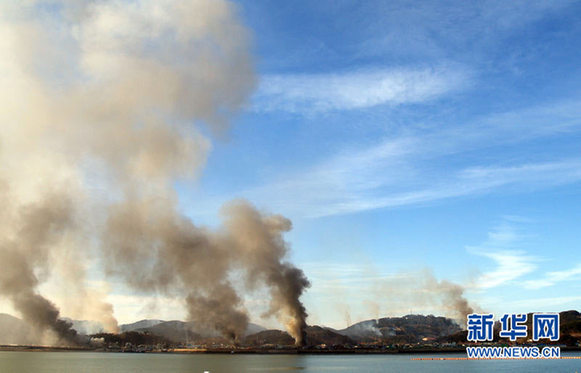 11月23日,韓國西部延坪島上硝煙滾滾。韓國和朝鮮當(dāng)日下午在有爭議的“北方界線”附近發(fā)生交火。新華社/法新