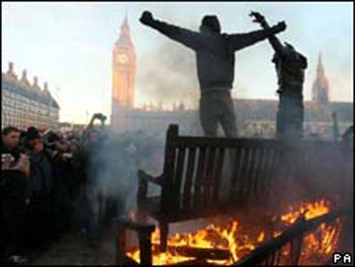 抗議學(xué)生對國會通過調(diào)升學(xué)費案,情緒激動,轉(zhuǎn)向國會附近地區(qū),熱鬧購物街牛津街的商家窗戶被砸壞。連搭車經(jīng)過的查爾斯王子伉儷,也被抗議者包圍。