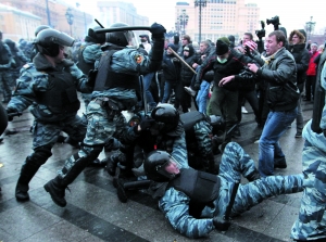 俄羅斯首都莫斯科市中心馬涅什廣場11日發(fā)生足球球迷騷亂。數(shù)以千計的球迷聚集廣場,悼念不久前遭人槍殺的一名球迷。悼念活動最終演變?yōu)楸┝_突。大約19人被送往醫(yī)院救治,65人遭逮捕。