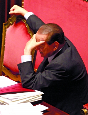 13日,意大利羅馬,總理貝盧斯科尼在國會參議院發(fā)表演講后休息。