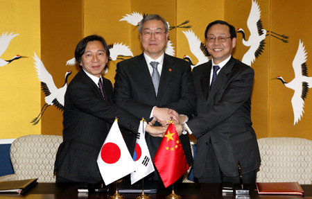16日,中、韓、日三國政府代表在首爾簽署了《中日韓三國政府關(guān)于建立三國合作秘書處的協(xié)議》。根據(jù)協(xié)議,三國將于2011年成立三國合作秘書處。這被韓國媒體稱為東北亞三個相鄰國家“具有里程碑意義的事件”。