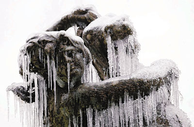 羅馬許愿池結(jié)冰
