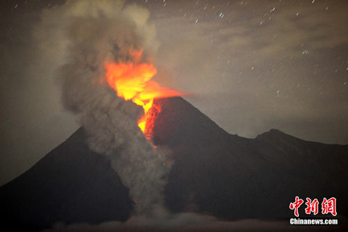 印尼默拉皮火山發(fā)生大規(guī)模噴發(fā)。