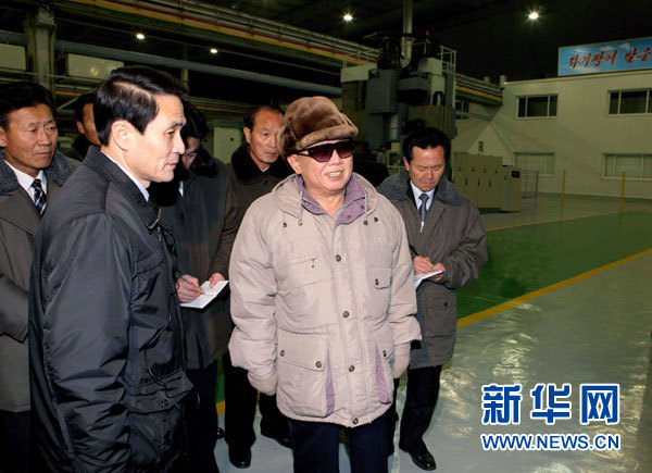 朝鮮中央通訊社22日提供的照片顯示,朝鮮最高領(lǐng)導(dǎo)人金正日近日視察熙川蓮荷機(jī)械綜合工廠。據(jù)朝鮮中央通訊社21日報道,朝鮮最高領(lǐng)導(dǎo)人金正日近日在視察熙川蓮荷機(jī)械綜合工廠時強(qiáng)調(diào),全國所有部門和單位都要大力推進(jìn)基于最新科技基礎(chǔ)上的現(xiàn)代化建設(shè)。新華社/朝中社