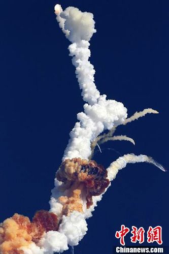 12月25日,印度新型通信衛(wèi)星發(fā)射升空后爆炸特寫圖。來源:中國(guó)新聞網(wǎng)