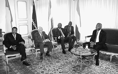 12月28日,科特迪瓦阿比讓,西非國家經(jīng)濟(jì)共同體派出貝寧、塞拉利昂和佛得角三國總統(tǒng)率領(lǐng)的特別高級代表團(tuán)會晤科特迪瓦前總統(tǒng)巴博。人民圖片