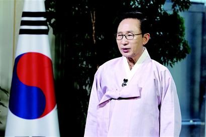 圖為:韓國總統(tǒng)李明博身著傳統(tǒng)韓服發(fā)表新年致辭(資料圖)