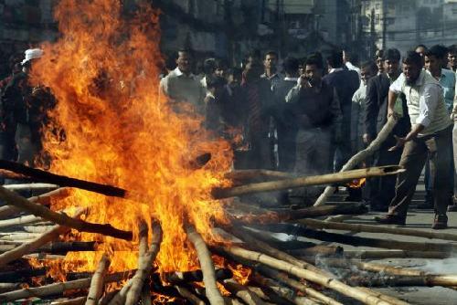 由于孟加拉國股市連續(xù)暴跌,該國股民1月10日憤怒地走上街頭舉行抗議。