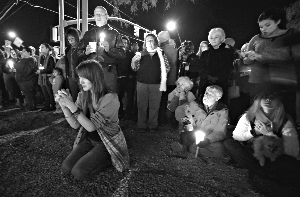 1月9日,亞利桑那州圖森市市民在女議員吉福茲位于當?shù)氐霓k公室外點燃蠟燭,為其祈禱。