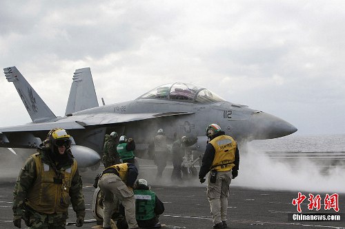 此次向媒體公開的信息顯示,在“卡爾·文森”號甲板上,F(xiàn)A-18戰(zhàn)斗機與EA-6B電子作戰(zhàn)飛機以1分鐘的間隔反復演練艦上起降。美第一航母戰(zhàn)斗群司令佩雷斯強調(diào),此次演習“是展現(xiàn)日美在太平洋地區(qū)穩(wěn)固同盟關系的有力信號。”