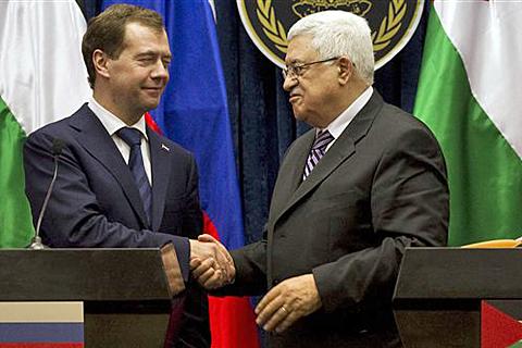 據(jù)外電報(bào)道,俄羅斯總統(tǒng)梅德韋杰夫18日對巴勒斯坦約旦河西岸進(jìn)行了一次罕見的訪問,并重申俄方承認(rèn)獨(dú)立的巴勒斯坦國。