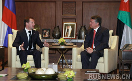 梅德韋杰夫說:“我對訪問中東成果感到滿意,我們與親密的伙伴巴勒斯坦民族權(quán)力機構(gòu)主席阿巴斯和約旦國王阿卜杜拉二世進行了磋商。這兩個國家都是我們的在中東的合作伙伴。”