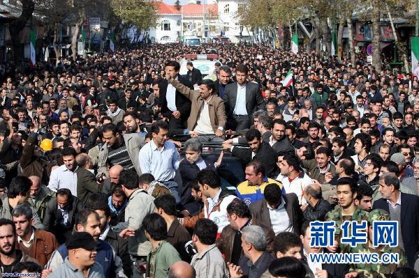 1月23日,伊朗總統(tǒng)艾哈邁迪-內(nèi)賈德在拉什特向支持者揮手致意。伊朗總統(tǒng)艾哈邁迪-內(nèi)賈德23日發(fā)表講話時說,伊朗希望與國際社會繼續(xù)就伊朗核問題進(jìn)行談判。伊核問題有關(guān)六國——美國、英國、法國、俄羅斯、中國和德國與伊朗之間的新一輪談判22日在土耳其伊斯坦布爾結(jié)束。由于分歧巨大,談判未取得實質(zhì)性成果。新華社/路透