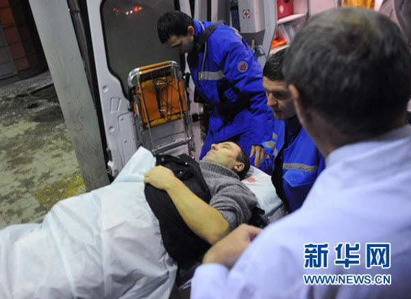 1月24日,醫(yī)護(hù)人員運(yùn)送一位在多莫杰多沃機(jī)場爆炸中的傷者。新華社/路透