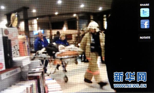 1月24日,網(wǎng)站播放目擊者拍攝的救援人員在莫斯科多莫杰多沃機(jī)場(chǎng)救治因爆炸傷者畫面。當(dāng)?shù)貢r(shí)間16時(shí)32分,莫斯科多莫杰多沃機(jī)場(chǎng)發(fā)生爆炸,截至目前已造成31人死亡,130多人受傷。新華社記者 趙嘉麟攝