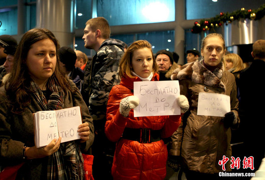 當(dāng)?shù)貢r(shí)間1月24日16時(shí)32分,俄羅斯首都莫斯科多莫杰多沃機(jī)場發(fā)生自殺式恐怖爆炸事件,導(dǎo)致35人死亡,180人受傷。俄出動強(qiáng)力部門全力偵破爆炸事件。圖為事件發(fā)生后,多名在機(jī)場迎接親人的當(dāng)?shù)厍嗄曜园l(fā)組織起來,免費(fèi)為乘客提供車輛服務(wù)。中新社記者 田冰 攝
