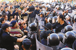 從25日早晨,埃及首都開羅、亞歷山大和蘇伊士發(fā)生游行抗議活動。游行原本和平進(jìn)行,示威者高叫口號,抗議高食品價格、高貧富差距,以及高失業(yè)率,要求統(tǒng)治國家三十年的總統(tǒng)穆巴拉克下臺。示威民眾說:“最終我們會贏回要求的權(quán)利。這還只是個開始,不是結(jié)尾。我們會不斷提出訴求,直到政府回應(yīng)我們,并從政治舞臺上離開!