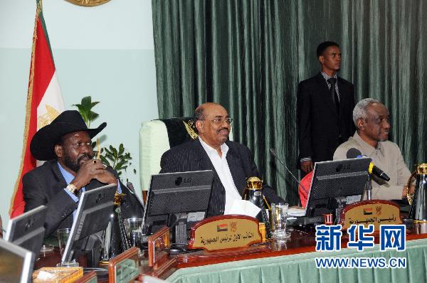 2月7日,蘇丹總統(tǒng)巴希爾(中)在喀土穆主持蘇丹部長委員會會議。據(jù)蘇丹官方的國家電視臺報道,蘇丹總統(tǒng)巴希爾當日頒布總統(tǒng)令,宣布承認和接受蘇丹南部公民投票的最終結(jié)果。根據(jù)蘇丹公投委員會1月底公布的初步結(jié)果,在1月9日至15日舉行的蘇丹南部公投中,98.83%的選民支持南部地區(qū)從蘇丹分離。新華社發(fā)(穆罕默德·巴比克爾攝)