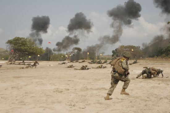 據(jù)不完全統(tǒng)計(jì),自去年6月以來,美軍與亞太盟國已舉行近20場不同規(guī)模的聯(lián)合軍事演習(xí),令整個(gè)亞太地區(qū)感受到了美國軍事力量的“無處不在”。2010年6月1號,為期11天、代號為“金色眼鏡蛇”的東南亞地區(qū)最大規(guī)模聯(lián)合軍事演習(xí)在泰國中部主要海陸空軍事基地及演練場舉行。軍演科目包括救生、登陸、轉(zhuǎn)移戰(zhàn)區(qū)居民、維和等。來自泰國、美國、印度尼西亞、新加坡、日本、韓國的約1.4萬名軍事人員參加演習(xí)。此后,以美國為首的多國特種部隊(duì)先后在柬埔寨、韓國、菲律賓和新加坡舉行了多次聯(lián)合軍演,外界也普遍認(rèn)為,美國在亞太地區(qū)如此頻密地舉行軍演,正是五角大樓開啟“亞太新世紀(jì)”的標(biāo)志。
