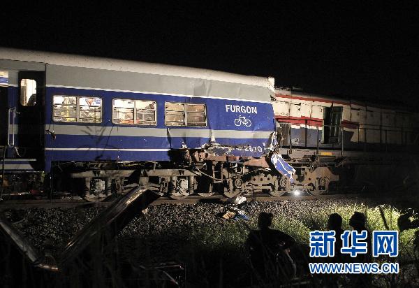 這是2011年2月17日在阿根廷布宜諾斯艾利斯省圣米格爾市附近拍攝的火車相撞現(xiàn)場(chǎng)。 新華社/路透