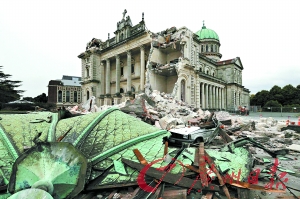 克賴斯特徹奇的一所教堂在地震中局部坍塌。