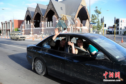 2月24日,地震后的新西蘭人仍向游人展示熱情的微笑。中新社發(fā) 吳良隆 攝