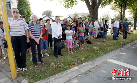 新西蘭政府宣布3月1日為全國(guó)哀悼日。在地震發(fā)生時(shí)的12時(shí)51分,新西蘭總理約翰·基要求全國(guó)民眾默哀兩分鐘。圖為新西蘭民眾站在主要交通路口為地震死難者默哀。