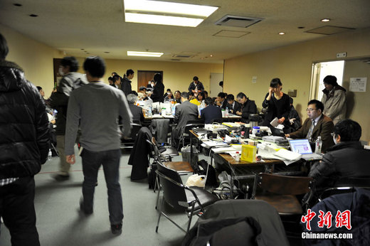 3月15日,福島縣廳里福島地震對策總部一片忙碌的景象。中新網(wǎng)記者 王紅綱 唐偉杰