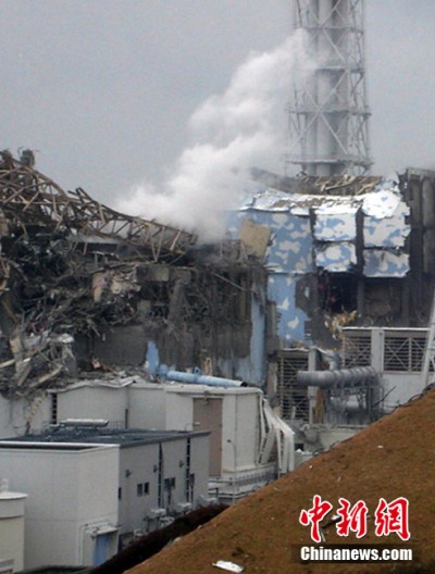 3月16日,負(fù)責(zé)福島核電站運(yùn)營(yíng)的東京電力公司公開(kāi)了一張當(dāng)日上午拍攝的第一核電站的照片。照片顯示,第三核反應(yīng)堆電站(左)的一部分建筑已經(jīng)炸毀,并冒出白煙。