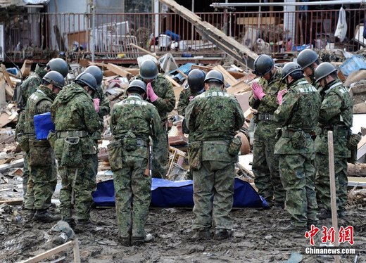 3月18日下午,日本民眾為一周前大地震中6000多名遇難者舉行默哀儀式,所有避難所和救援人員都停止作業(yè),為死難者哀悼。