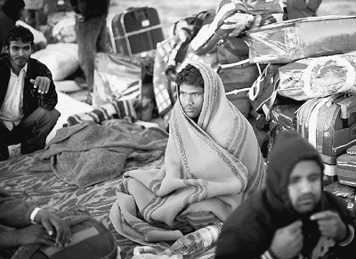 3月22日,從利比亞逃出的外國工人在利比亞與突尼斯邊境附近的難民營(yíng)里艱難度日。
