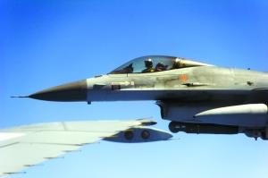 3月29日,部署在地中海上空的荷蘭KDC-10空中加油機(jī)在空中為荷蘭F-16戰(zhàn)斗機(jī)加油。