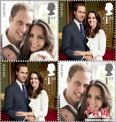 圖為為慶祝威廉王子婚禮而發(fā)行的一套紀念郵票。