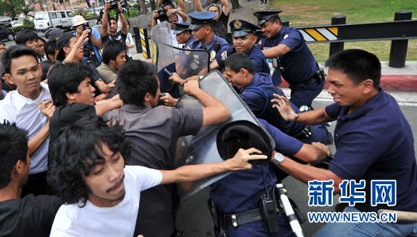 當(dāng)天中午,上百名民眾在馬尼拉美國(guó)駐菲律賓大使館外舉行示威,譴責(zé)聯(lián)合軍演實(shí)質(zhì)是美國(guó)對(duì)菲律賓主權(quán)和領(lǐng)土完整的侵犯。部分試圖闖入使館的示威者還同警方和安保人員發(fā)生沖突。大約30分鐘后,防暴警察驅(qū)散了示威者。