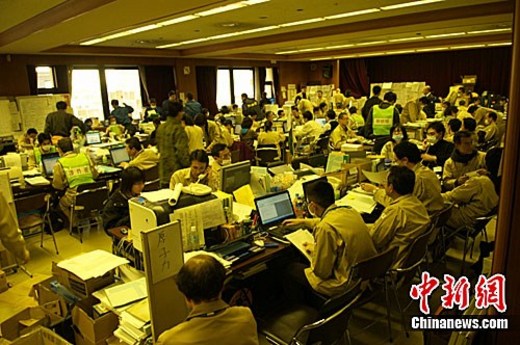 3月29日,福島第一核電站的核泄漏事件持續(xù)升級,圖為福島市災害對策本部工作人員忙碌的景象。中新社發(fā) 孫冉 攝