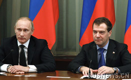 俄羅斯總理普京(左)與俄總統(tǒng)梅德韋杰夫