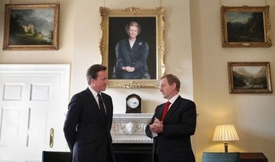 英國(guó)首相卡梅倫(左)18日在唐寧街首相府會(huì)見了來(lái)訪的愛爾蘭總理肯尼。