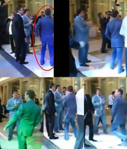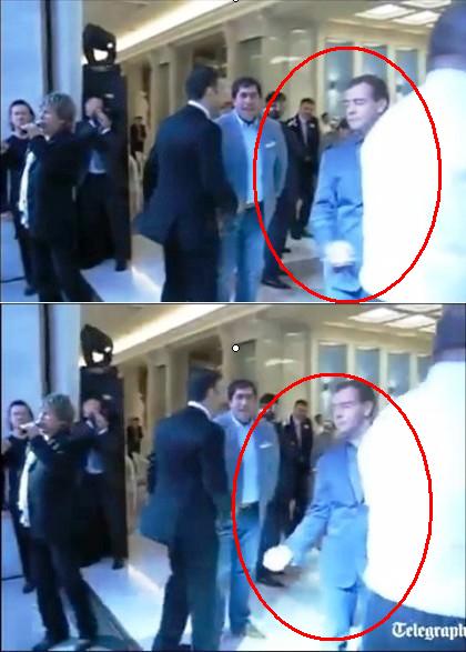 紅圈中為正“熱舞”的俄羅斯總統(tǒng)梅德韋杰夫