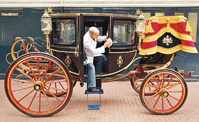 威廉和凱蒂婚禮當天極可能下雨,王室職員在擦拭玻璃馬車以備隨時使用。