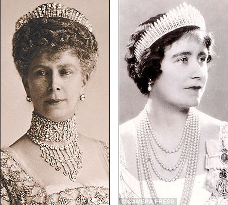 “喬治三世皇冠”是皇室珠寶飾物中的一件,在1919年為瑪麗女王(左)打造成為王冠,后于1937年傳給新女王(右),即她的兒媳。