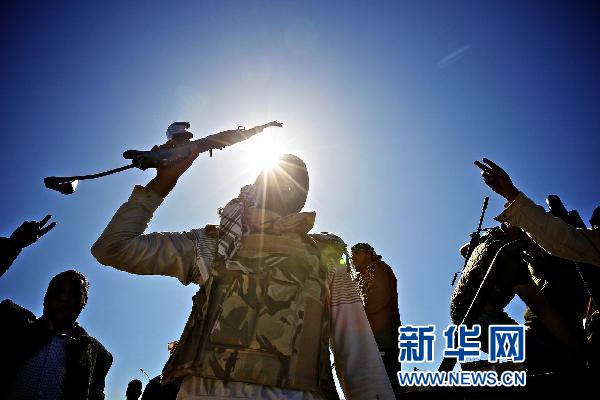 4月10日,在利比亞艾季達(dá)比耶,反政府軍士兵慶祝艾季達(dá)比耶防守成功。當(dāng)日,利比亞反政府軍與政府軍在艾季達(dá)比耶發(fā)生激戰(zhàn),雙方互相發(fā)射火箭彈等,反政府軍有3輛載有火箭彈的卡車被擊中,造成約10人死亡。新華社記者才揚(yáng)攝