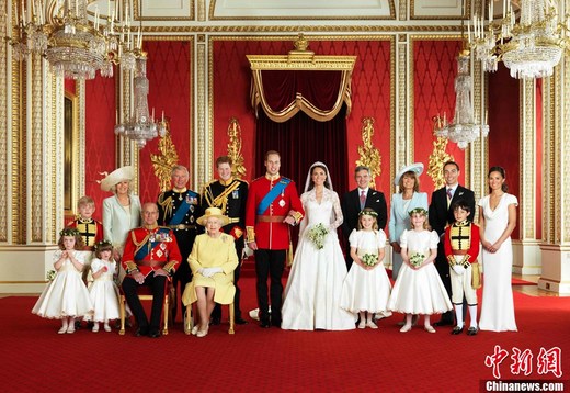 4月29日,拍攝于白金漢宮內(nèi)的威廉王子婚禮官方全家福照片公布。