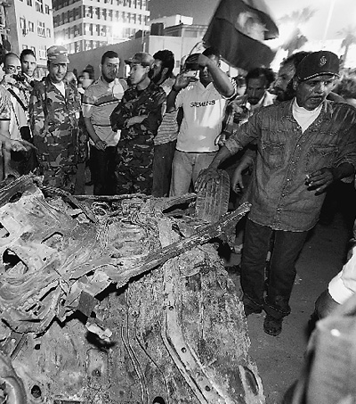 5月3日,人們聚集在利比亞班加西發(fā)生汽車爆炸的現(xiàn)場附近。當(dāng)晚,利比亞東部城市班加西市中心解放廣場附近發(fā)生一起汽車爆炸,汽車發(fā)生爆炸時,旁邊的解放廣場正有上千人進(jìn)行反對卡扎菲的抗議活動。新華社發(fā)