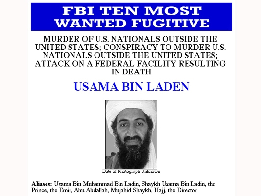 本·拉登曾被美國聯(lián)邦調(diào)查局列入十大主要通緝犯的名單
