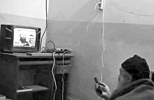 美國情報(bào)部門公布的錄像顯示,拉丹正在一個(gè)簡陋的屋子里看電視。