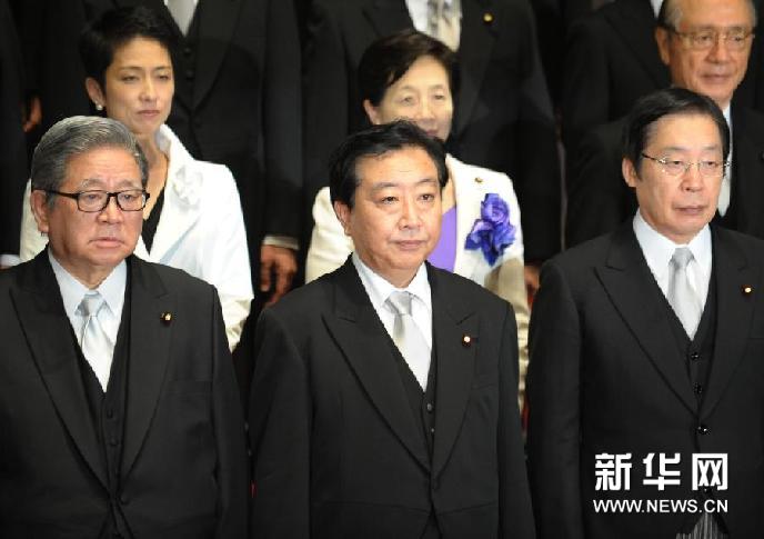 9月2日,在日本東京,日本首相野田佳彥(前排中)率內(nèi)閣成員集體亮相。新華社發(fā)(關(guān)賢一郎攝)
