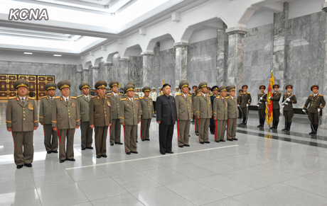 據(jù)朝中社報(bào)道,9日是朝鮮民主主義人民共和國(guó)成立64周年,朝鮮勞動(dòng)黨第一書記、朝鮮國(guó)防委員會(huì)第一委員長(zhǎng)、朝鮮人民軍最高司令官金正恩于9月9日0時(shí)來(lái)到錦繡山太陽(yáng)宮,向金日成和金正日表示敬意。