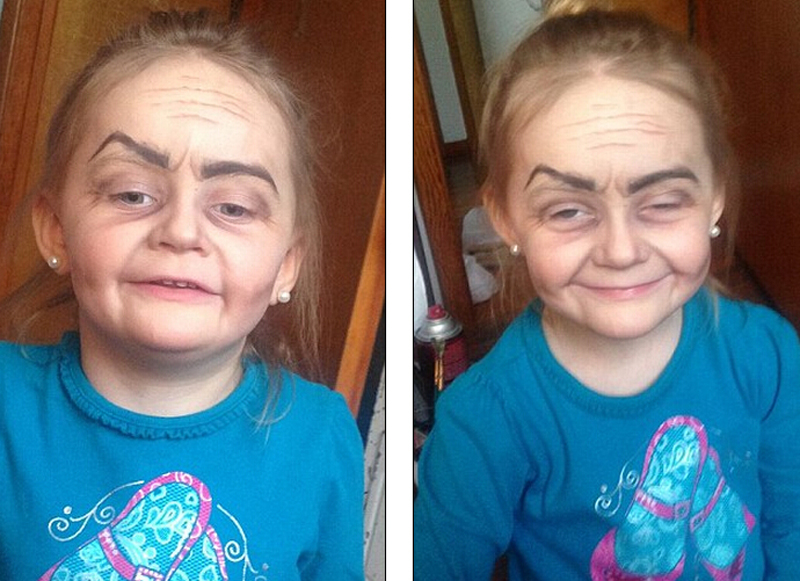 據(jù)英國(guó)《每日郵報(bào)》1月7日?qǐng)?bào)道,美國(guó)俄亥俄州3歲小姑娘羅伊(Roey)近日被阿姨化了一個(gè)“老人妝”,瞬間變成了一位80歲的老奶奶,照片被放到網(wǎng)上后點(diǎn)贊人數(shù)超過(guò)4萬(wàn)次。