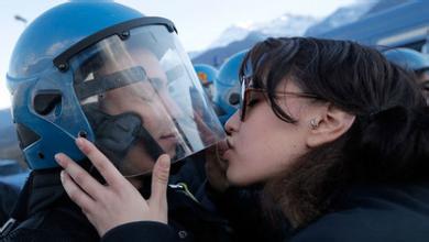 資料圖:意大利防爆警察遭美女“強(qiáng)吻”。
