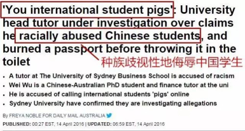 對此,悉尼大學(xué)學(xué)生會(huì)發(fā)表聲明說,“作為一名悉尼大學(xué)的員工公開發(fā)表如此具有種族歧視的言論是極不適合的”。